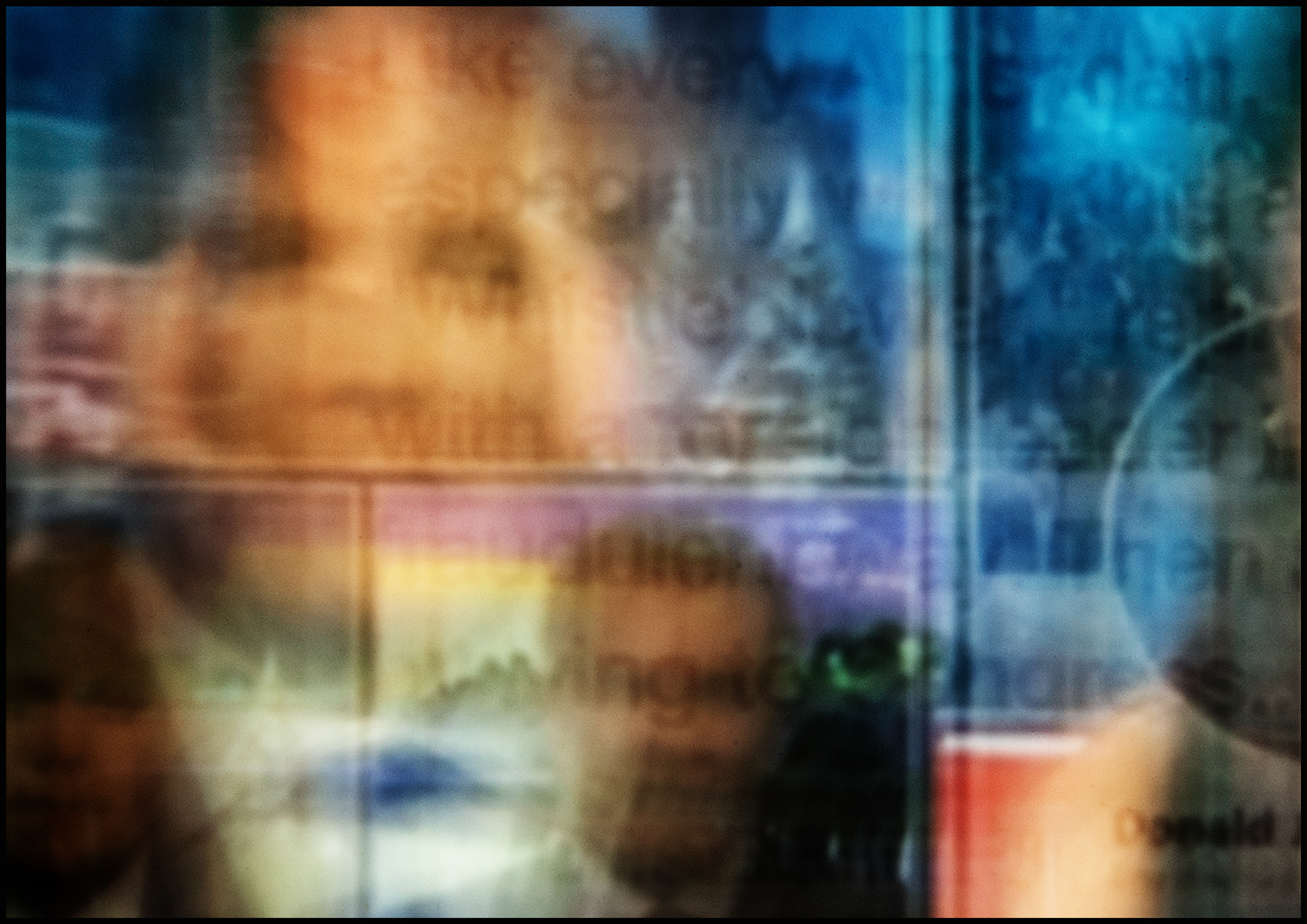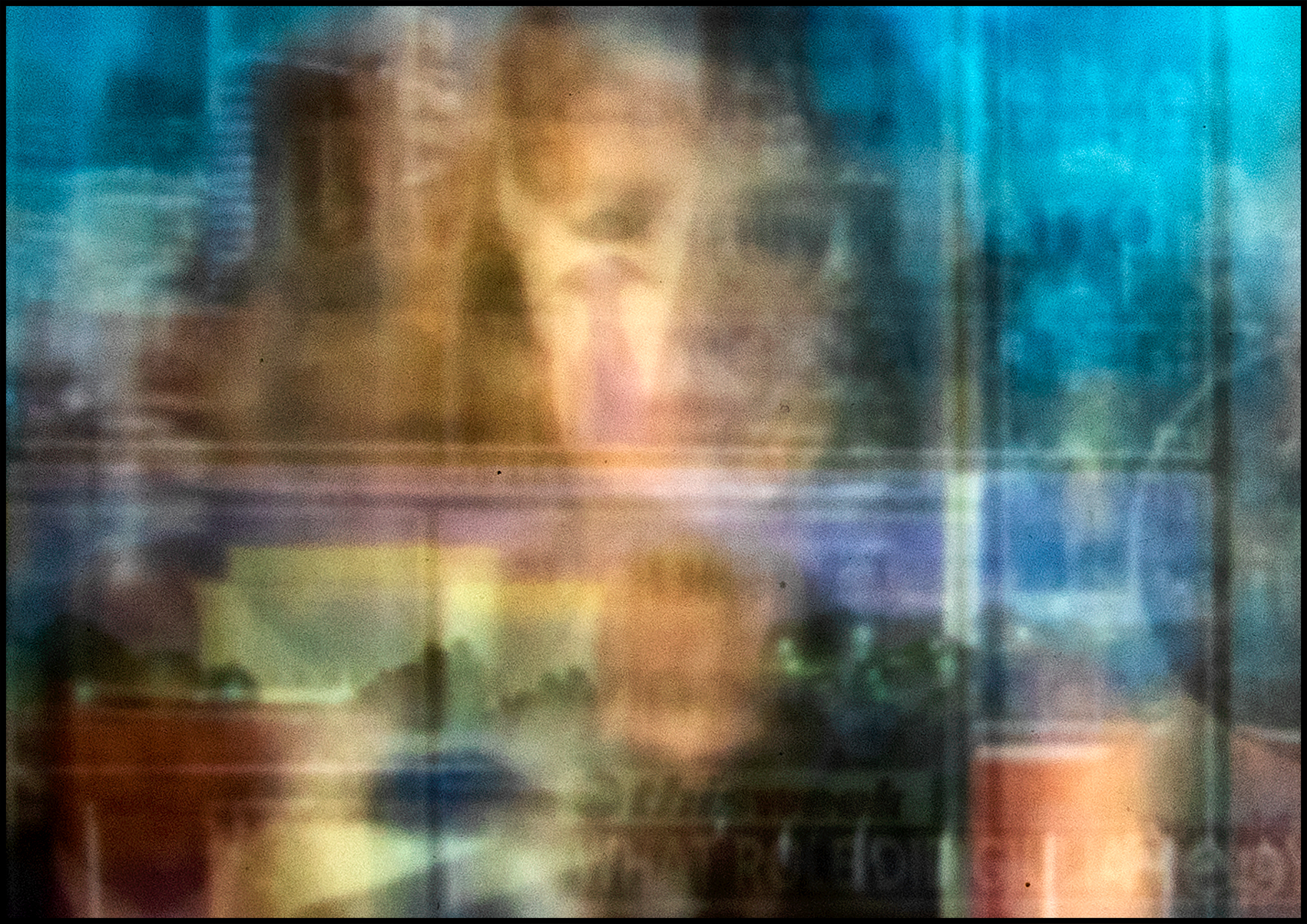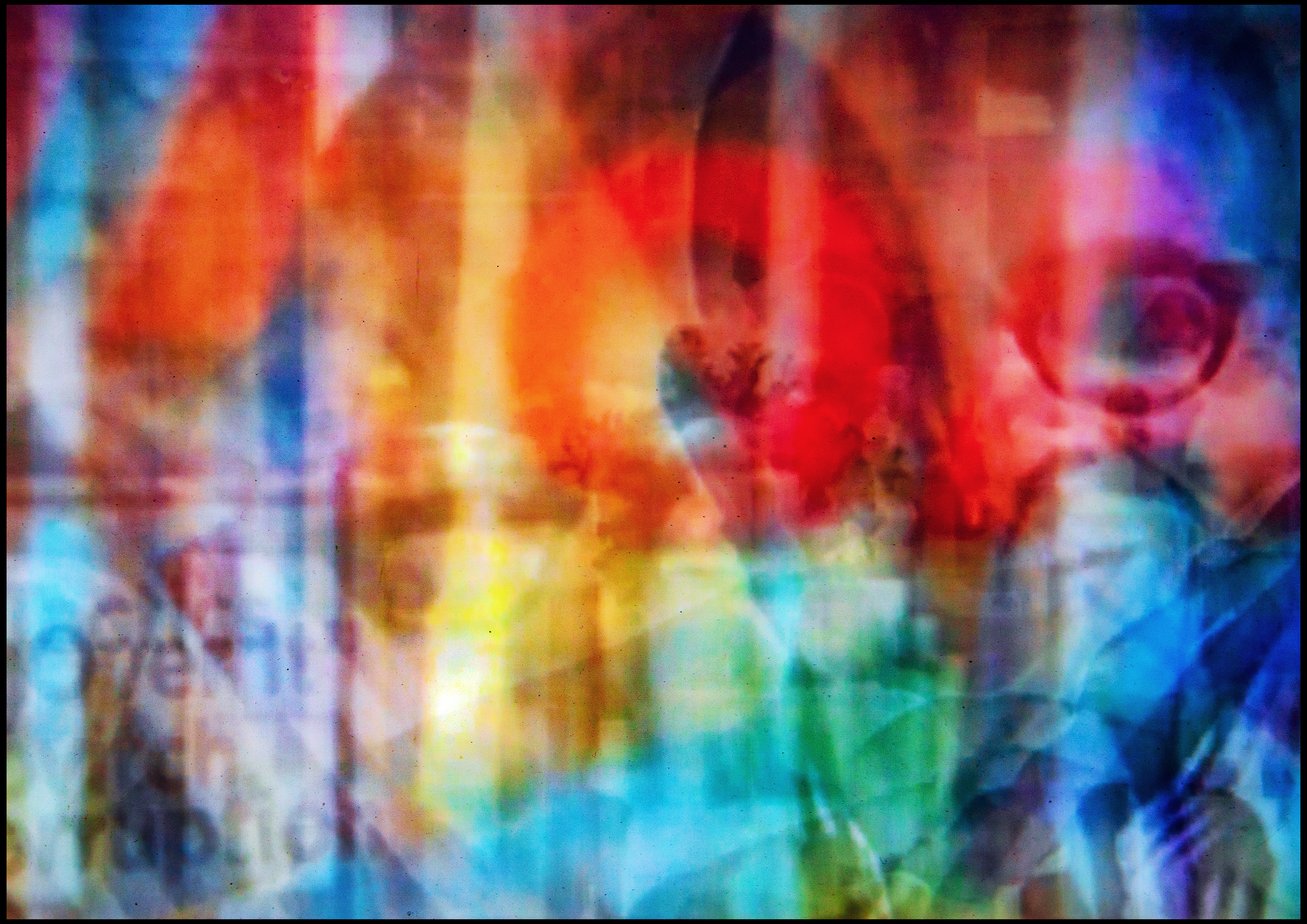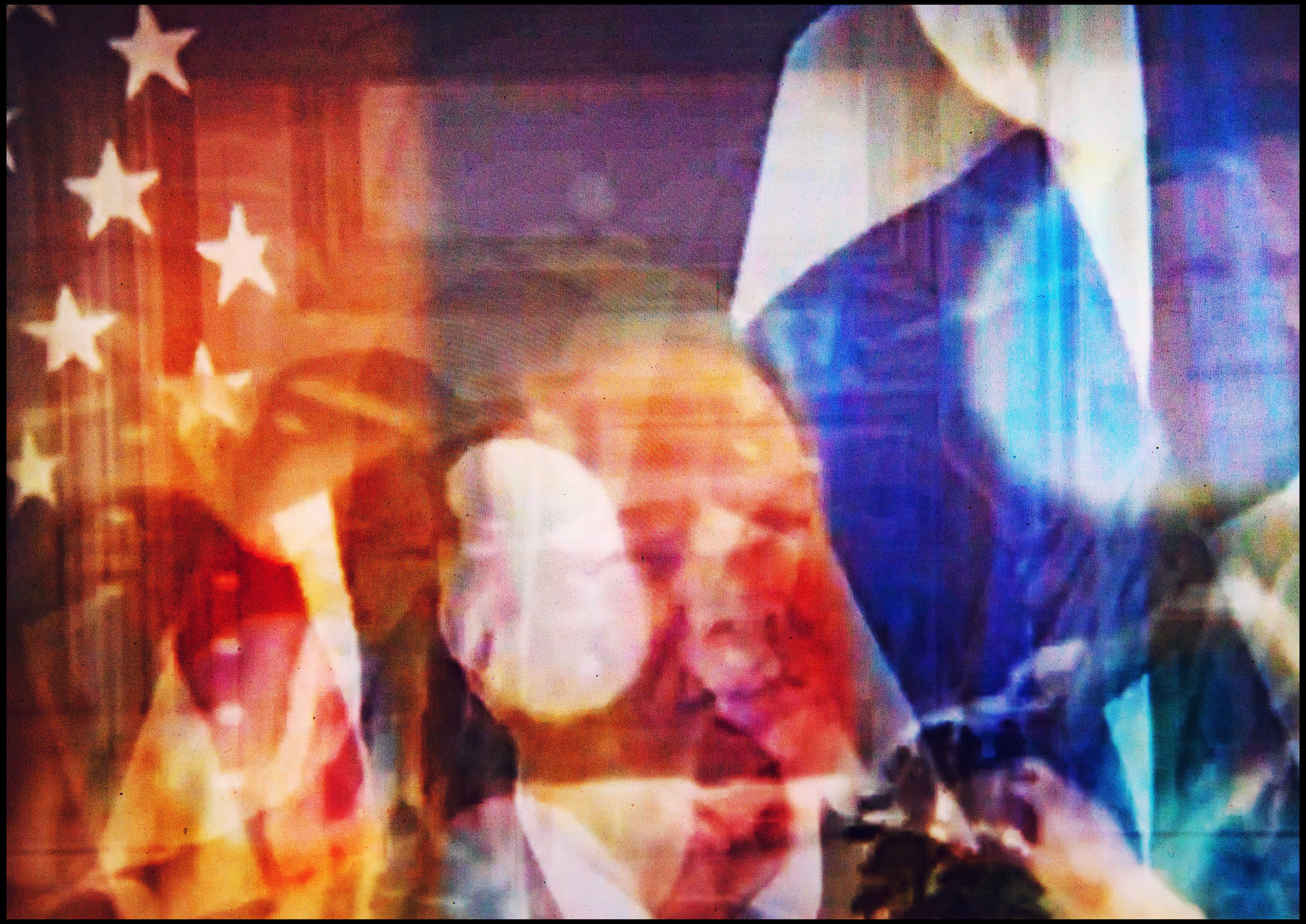 The result is an image-world that resists the singularity of the “decisive moment.” Instead it captures the saturation of mediated experience: endless loops of commentary, repetition, spectacle, and persuasion. What appears as information becomes a smear of colour and form, an aesthetic residue of overexposure. In this process the work stages the collapse of duration into simultaneity, the translation of narrative into texture, and the transformation of news into an unreadable accumulation.
